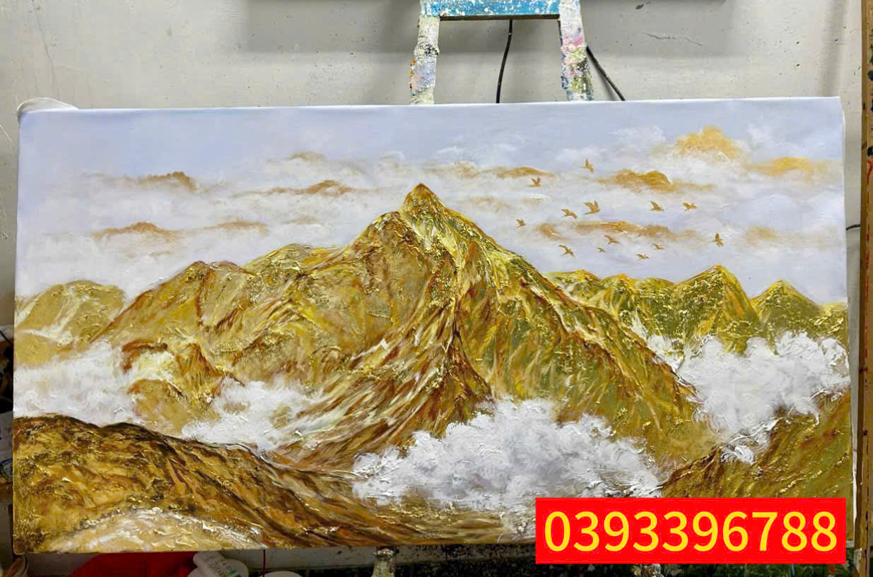 Tranh sơn dầu núi Phú Sĩ khắc họa vẻ hùng vĩ và thanh bình của biểu tượng thiên nhiên nổi tiếng Nhật Bản. Ngọn núi sừng sững với đỉnh phủ tuyết trắng, phản chiếu ánh sáng mềm mại từ bầu trời và mặt hồ tĩnh lặng phía dưới, tạo nên một khung cảnh vừa tráng lệ vừa thư thái. Gam màu hài hòa giữa xanh của rừng, trắng của tuyết và ánh hồng của bình minh hay hoàng hôn khiến bức tranh sống động như thật, đồng thời mang đến cảm giác bình an, tĩnh lặng và nguồn năng lượng tích cực cho không gian treo.