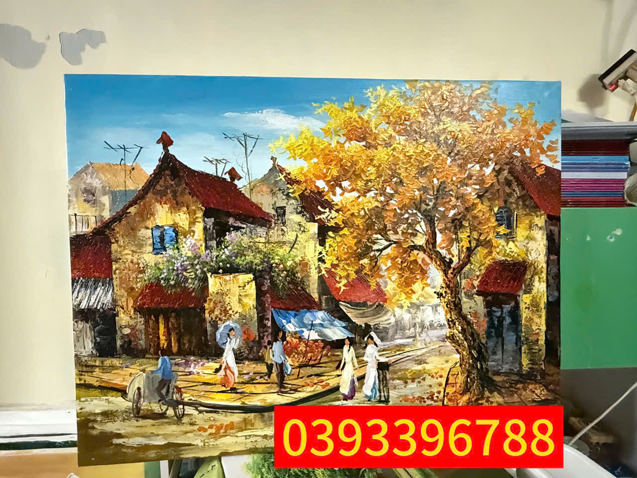 Tranh phố cổ Hà Nội – Tranh sơn dầu phố cổ mùa thu Hà Nội