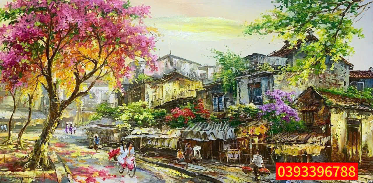 Tranh sơn dầu phố cổ Hà Nội – Tranh sơn dầu phong cảnh stt01
